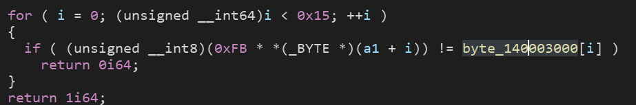 a1배열의 값*0xfb%256=byte_140003000배열의 값