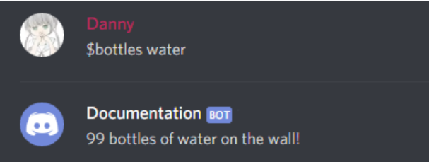 await ctx.send('{} bottles of {} on the wall!'.format(amount, liquid))