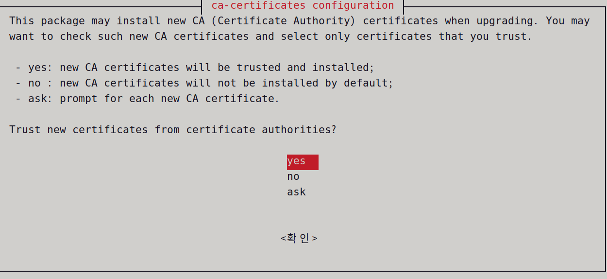 윈도우용 인증서는 .cer확장자 이지만 우분투용은 .crt로 바꿔줘야 하는것 같다.(확실치 않음)