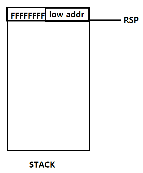PUSH 를 하게 되면 RSP-8(스택은 높은주소부터 낮은주소 이므로)후 RSP가 가르키고 있는위치에 값을 넣는다.