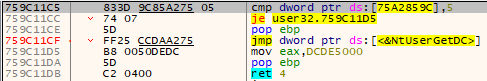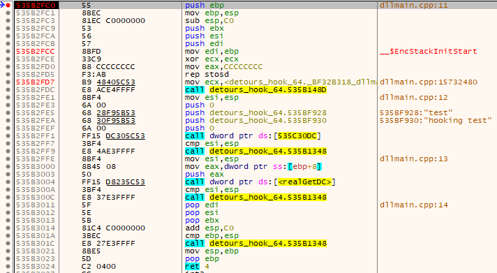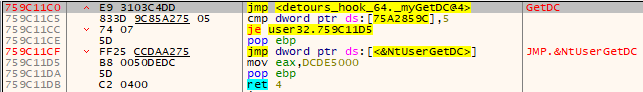 realGetDC의 어셈블리 코드