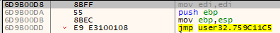 첫번째 jmp는 일단 detours table로 점프하는것 같다.