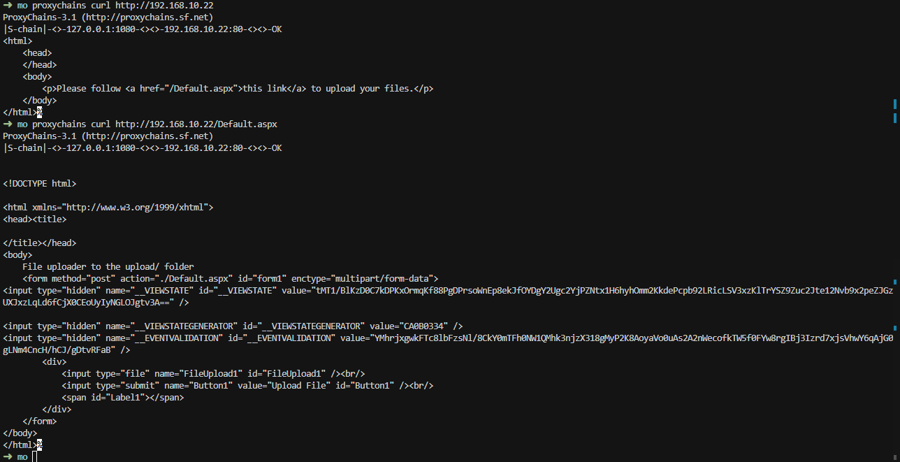 proxychains curl http://192.168.10.22/Default.aspx