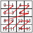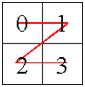 다음 예는 2^2 * 2^2 크기의 배열을 방문한 순서이다.